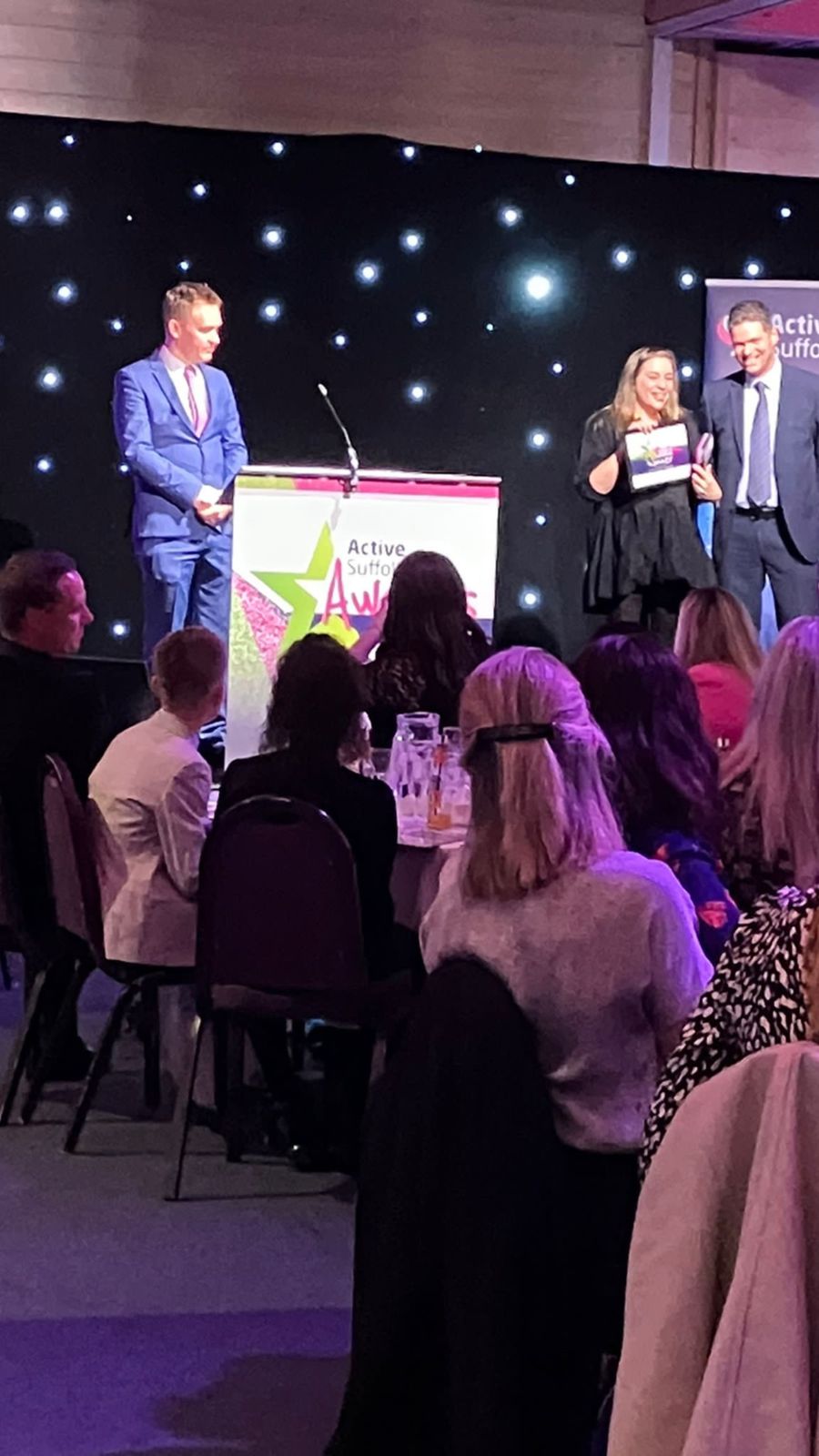 It took place in Ipswich at the ‘Active Suffolk Awards’ in November 2022. I had been shortlisted for the ‘Suffolk Activity Champion of the Year’. Yes, here is the horrible photo of me winning that award.